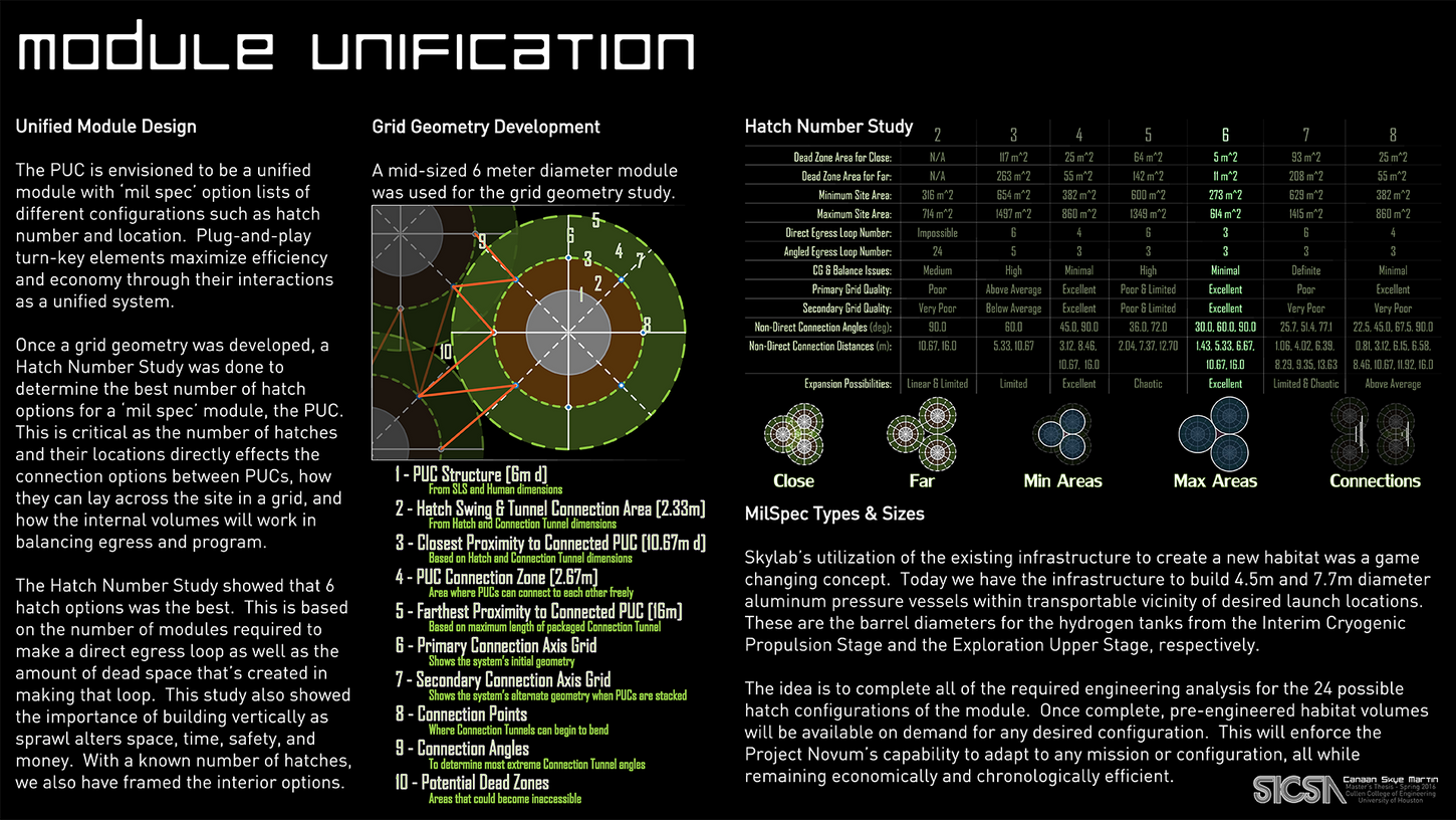 Project ‘Novum’ is a comprehensive study of the steps required for humans to most efficiently transform a feral site into a habitable base. This project utilizes current technology and in-use Earth based industrial infrastructures for the construction of the modules. Through this, the project’s design is kept from being pushed the realm of science fiction. Focused on the development of a modular system of augmentable elements, ‘Novum’ creates a Unified Architecture for the Extreme Environments of Earth, the Moon, Mars, and beyond. The project’s end focus is a design in which any realistic site across the known universe can be blanketed with an expanding and evolving habitable environment.